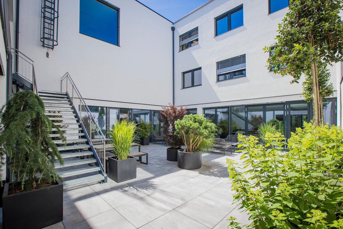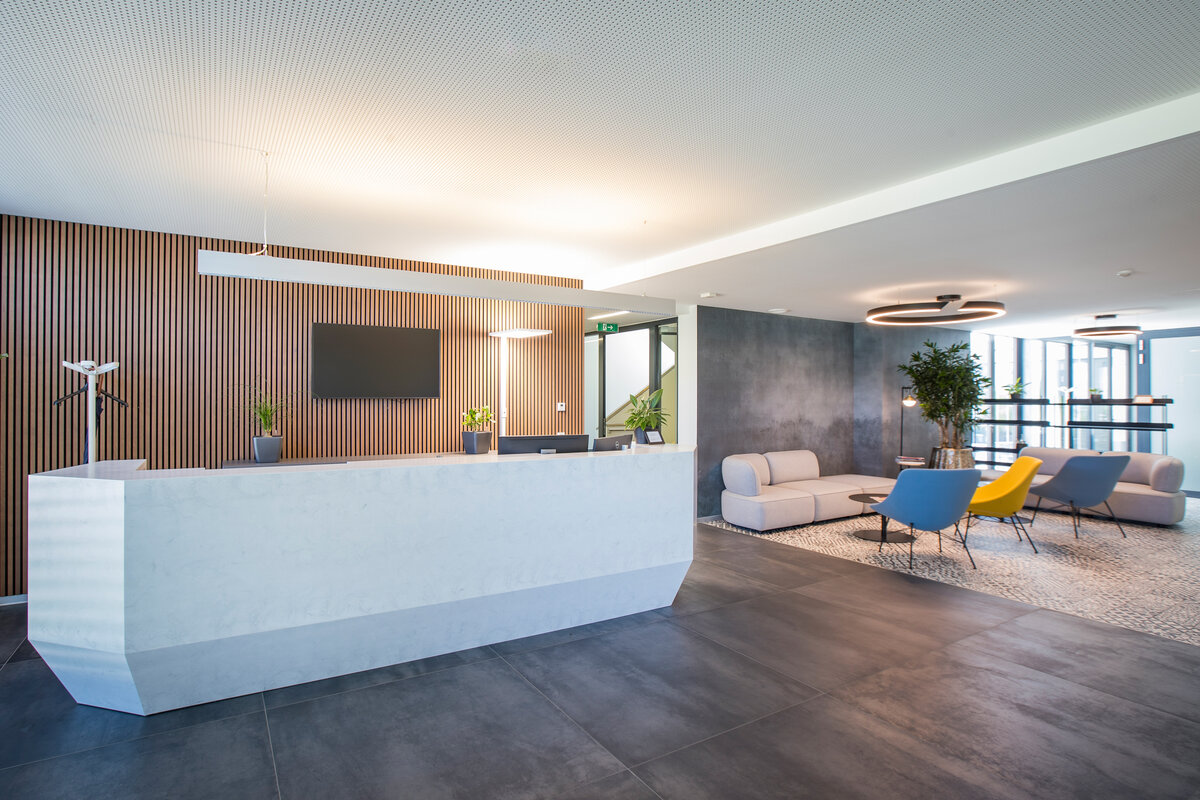 Ausreichend Parkplätze für jeden Mitarbeiter kostenlos.