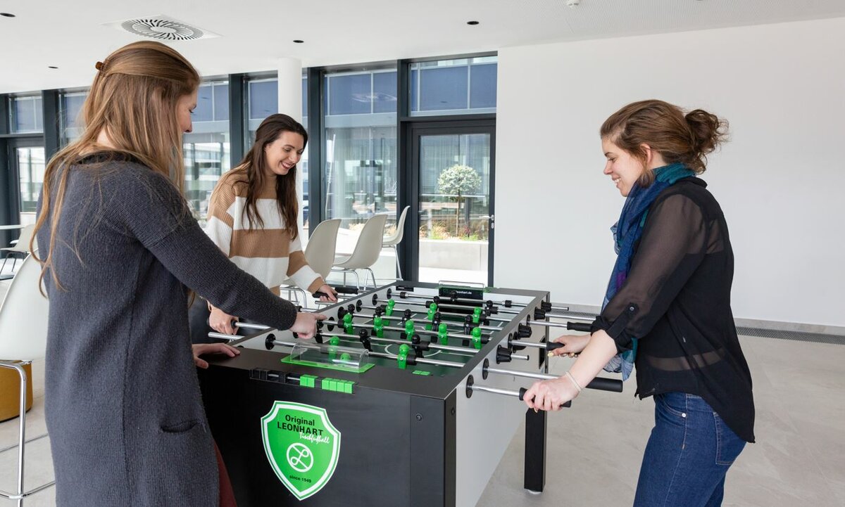 Moderene Räumlichkeiten, flexible Arbeitsmodelle, Homeoffice und ein Umfeld, in dem Arbeit Spaß macht und gleichzeitig effizient ist.